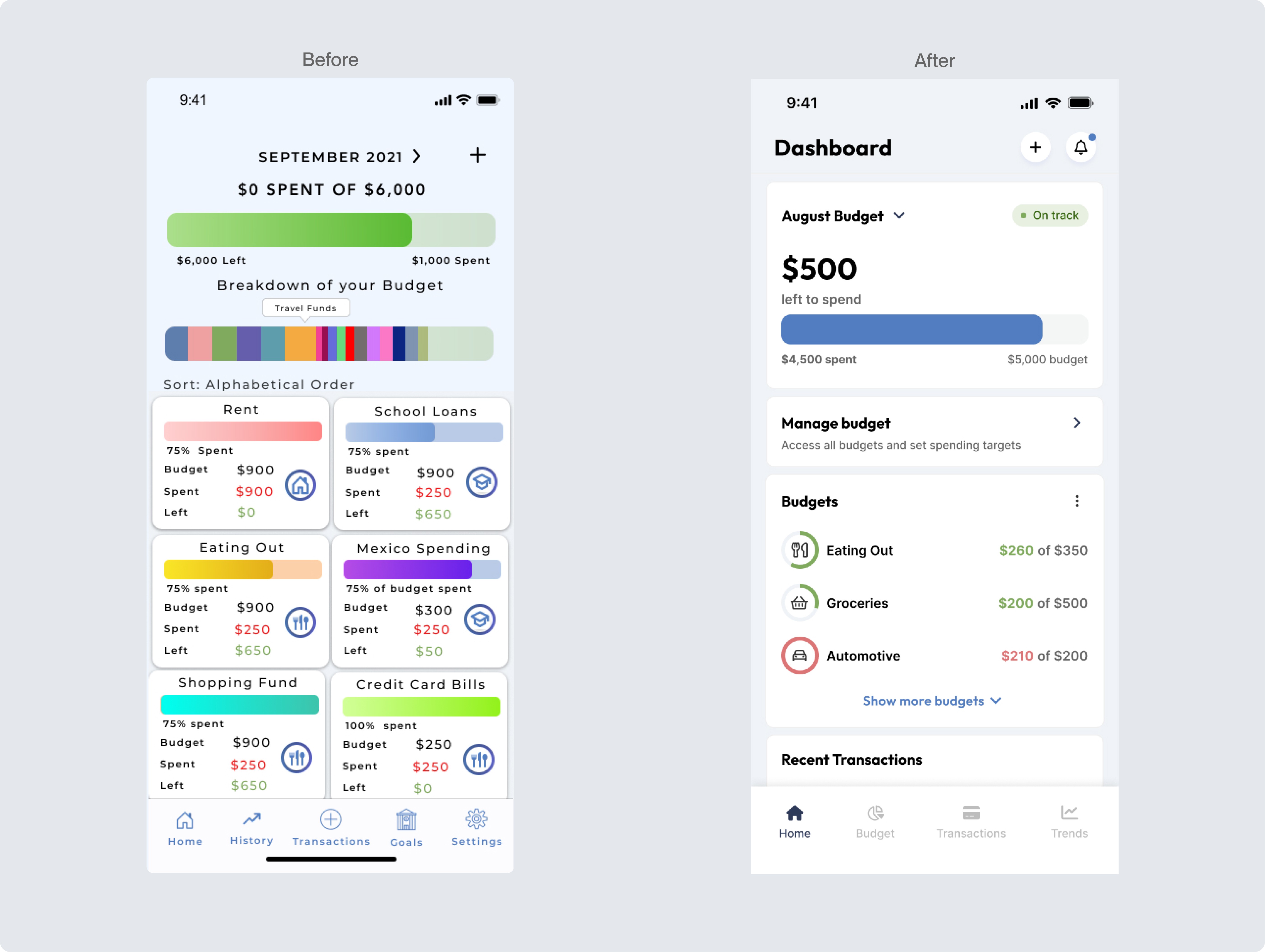 Redesigned budget dashboard