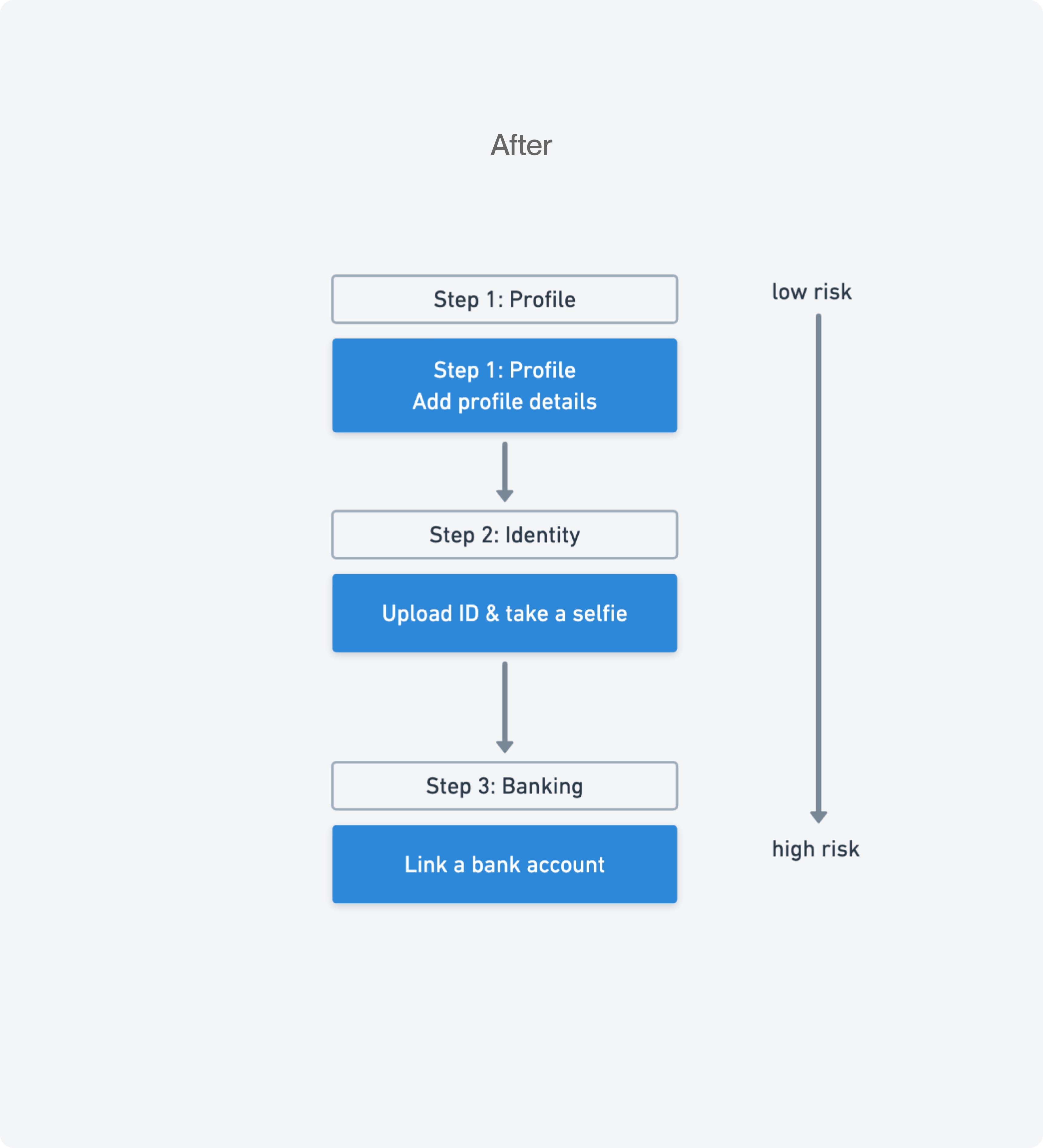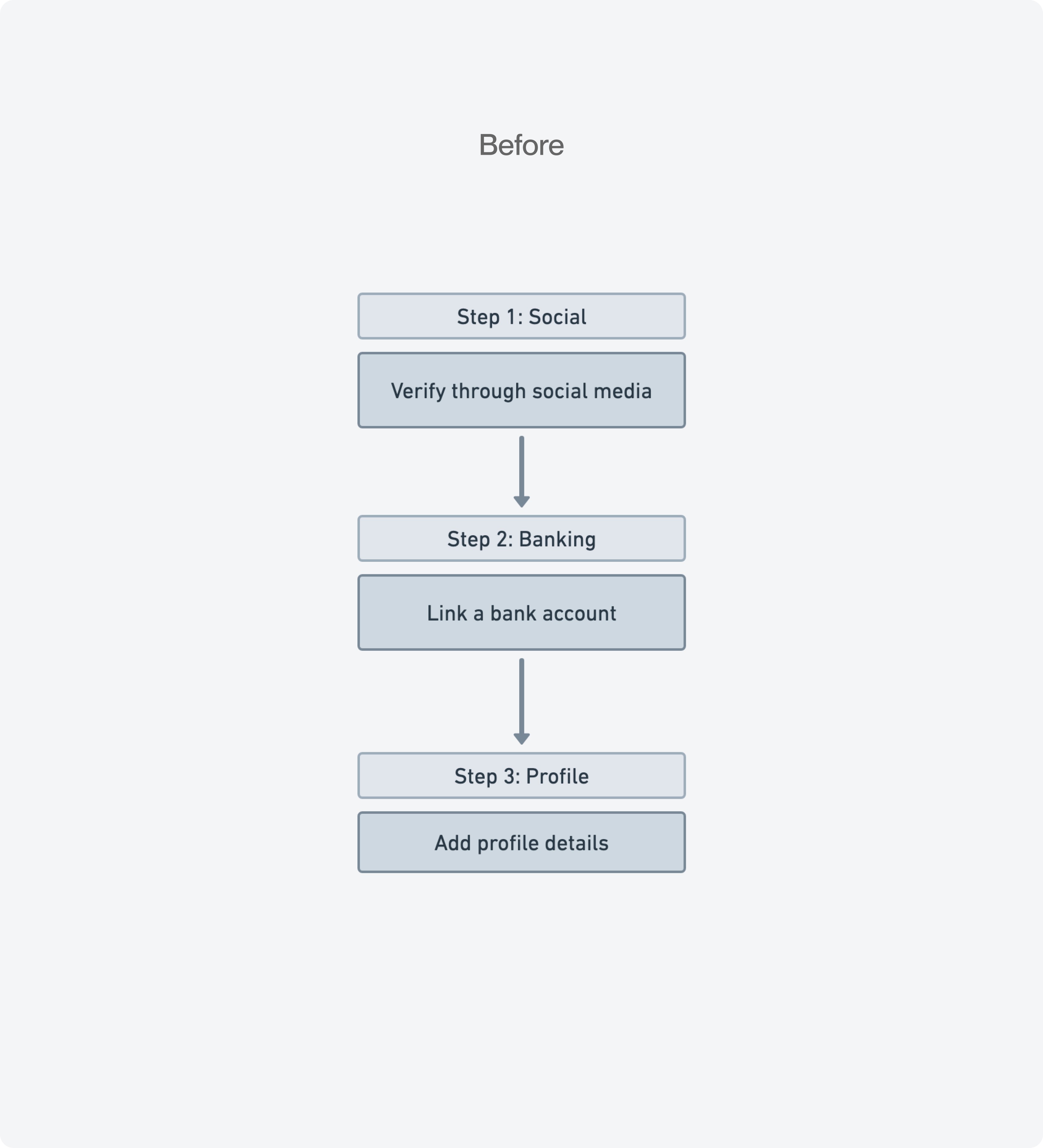 I led the product design process to introduce identity verification in a way that prioritized user trust and clarity around sensitive data. By staging friction intentionally rather than removing it, the redesigned flow achieved an 80% verification completion post-launch.