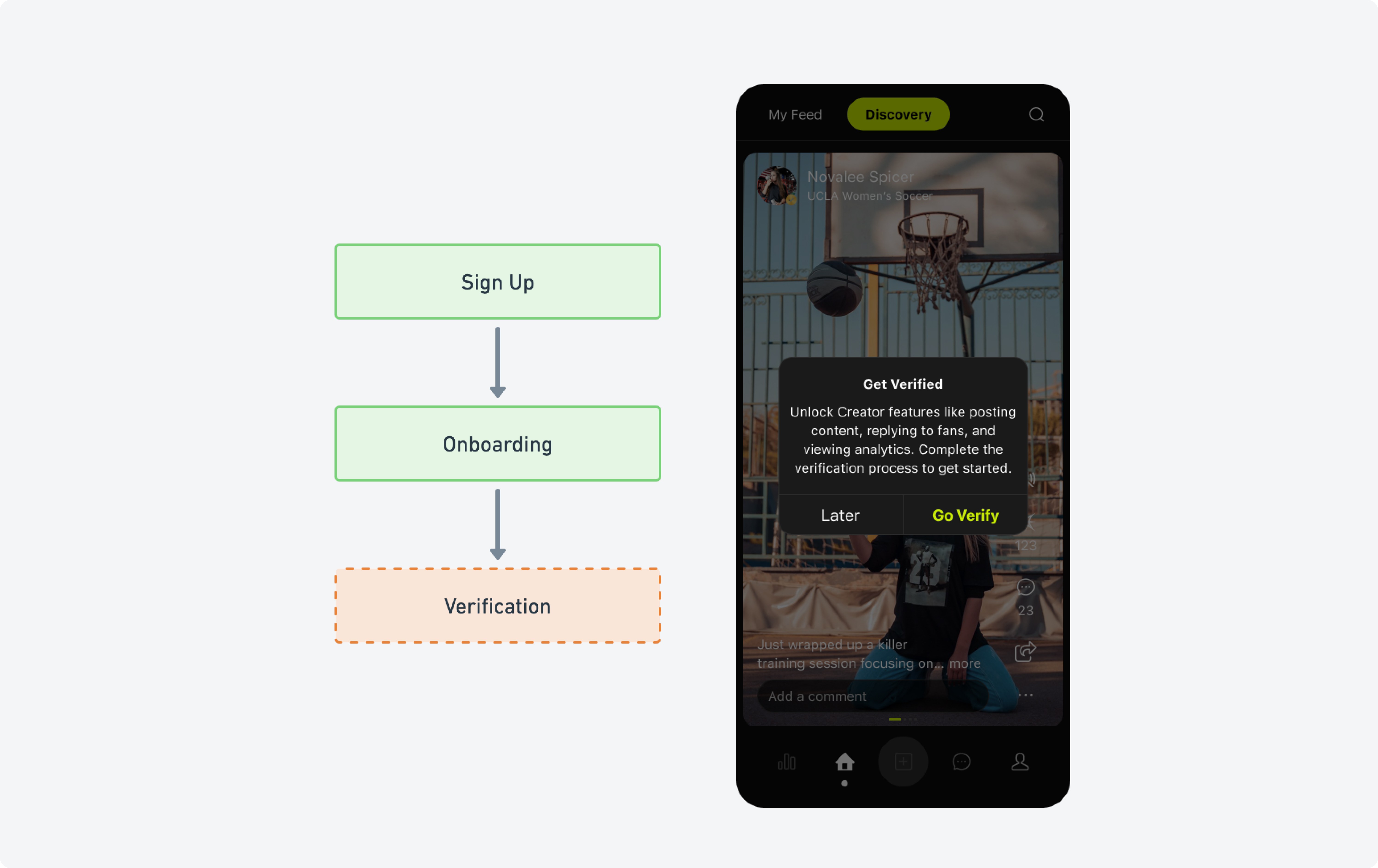 Creators are asked to verify after sign-up and onboarding when trust is still being formed